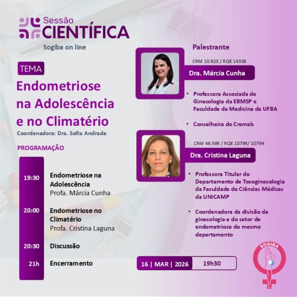 Aconteceu na última segunda-feira (18), mais uma SESSÃO SOGIBA ON LINE! O encontro teve como tema: “Endometriose na Adolescência e no Climatério” e teve como palestrantes a Profa. Márcia Cunha e a Profa. Cristina Laguna.