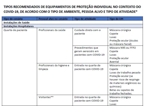 Confira os tipos de Equipamentos de Proteção Individual (EPI’s) recomendados no contexto do Coronavírus-19, de